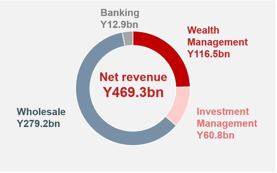 Growth in profits from recurring revenue business in Wealth Management and Investment Management made a contribution to steady groupwide performance, and Wholesale continued its self-sustained growth based on the principle of “self-funding”, enabling income before income taxes to rise substantially and drive groupwide earnings. Banking got off to a good start and made progress with preparations for the introduction of a deposit sweep service next fiscal year.