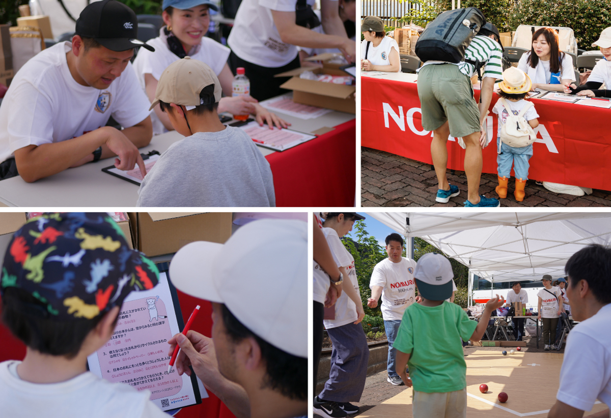 That evening, Nankatsu SC faced Tokyo United FC in a Kanto Soccer League Division 1 game at the same venue. The field was full of energy well before the game. Nomura Securities’ Koiwa Branch ran booths where kids and adults alike enjoyed money quizzes and boccia, the popular Paralympic sport. Events like this give Nomura the chance to engage directly with the local community and showcase our initiatives.