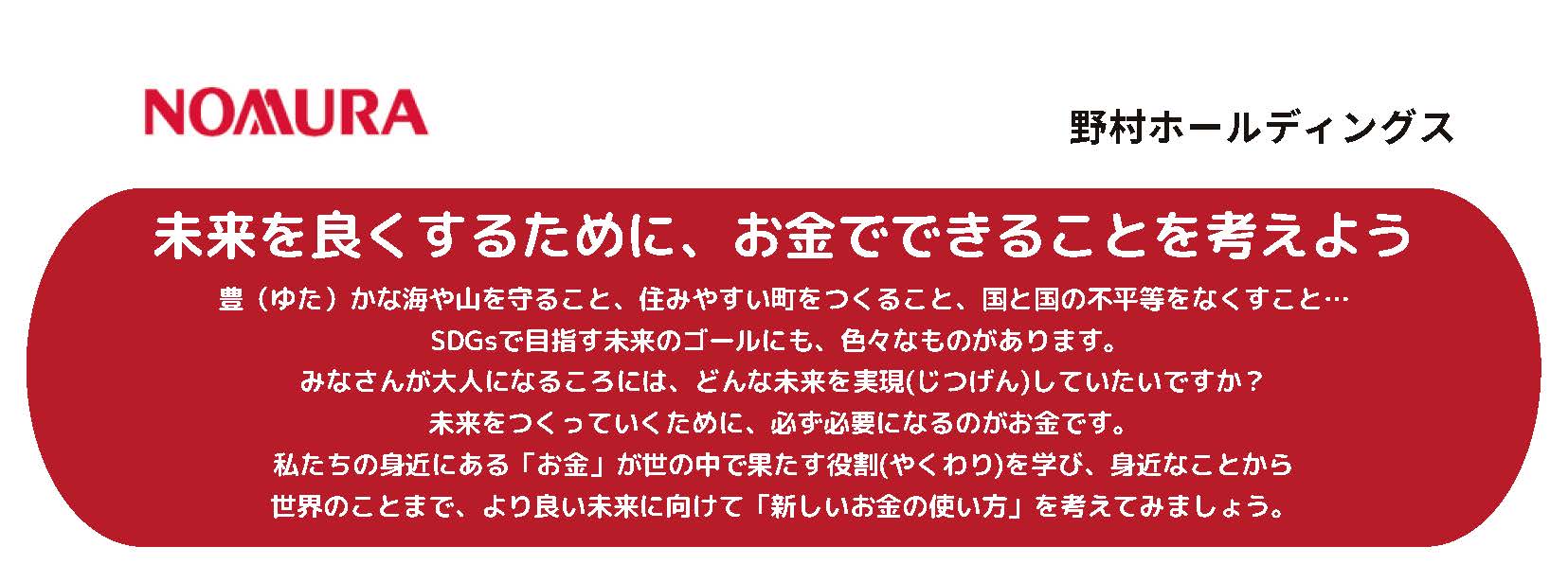 今回は大阪・関西万博という国際的な場で、野村グループの取り組みを紹介できました。私たちはこれからも、グループのパーパス「金融資本市場の力で、世界と共に挑戦し、豊かな社会を実現する」のもと、あらゆる人が未来を考え選択する自由を持ち、精神的・経済的な豊かさを感じる“Well-being”な社会を作れるよう、金融経済教育の活動を進めていきます。