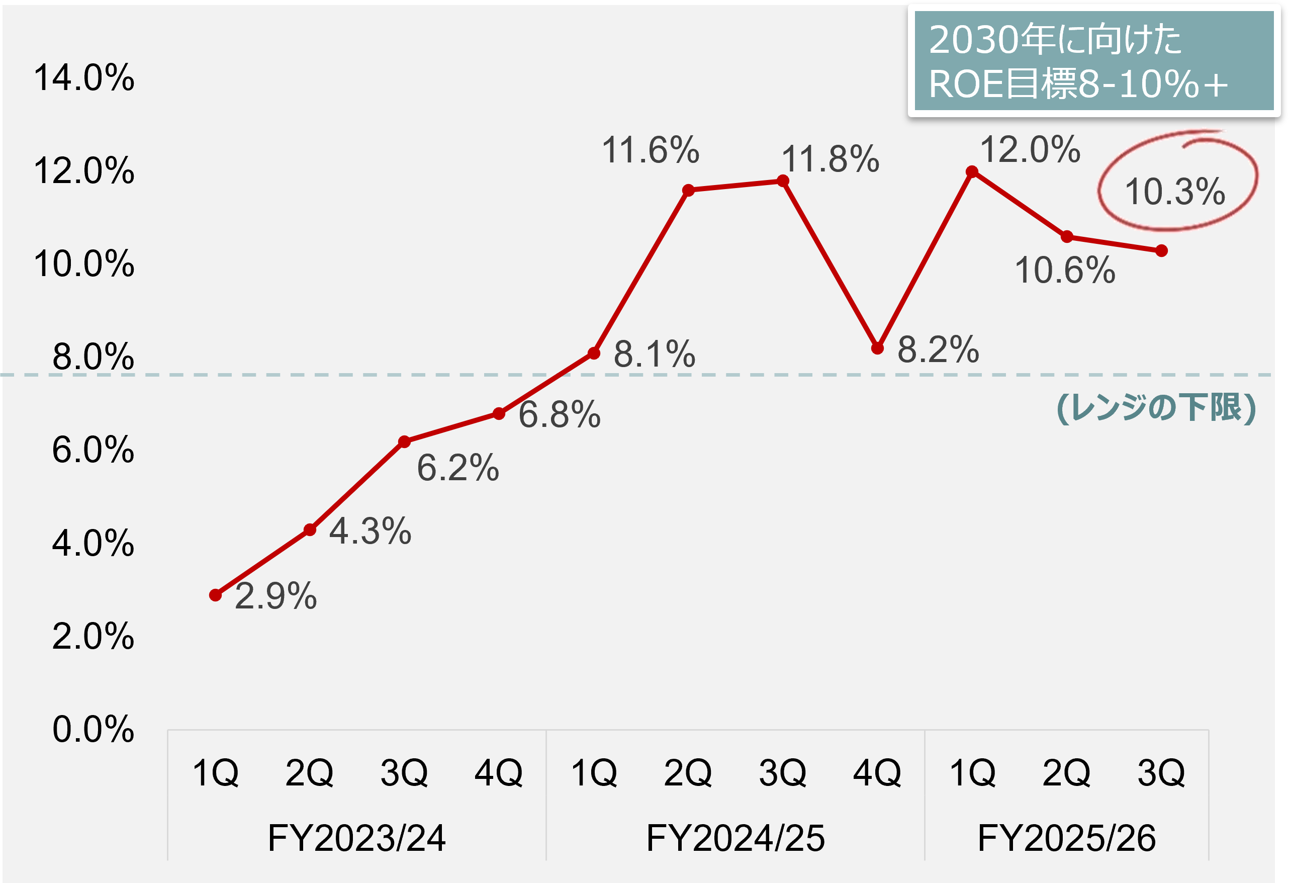 2030年に向けたROE目標を7四半期連続で達成
