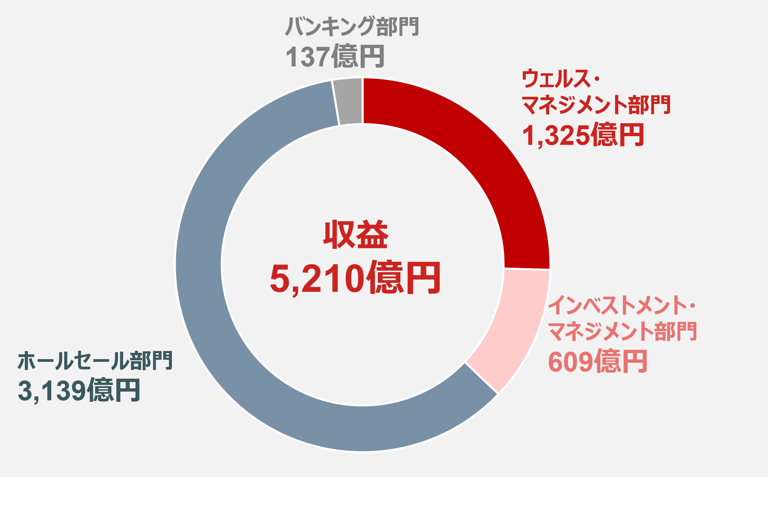 ストック型ビジネスの積み上げにより安定収益が着実に伸長し、成長に向けた基盤が拡大しています。業績は引き続き堅調で、特にウェルス・マネジメント部門とホールセール部門の増収増益トレンドが全社の業績を牽引しています。