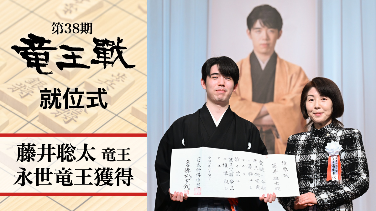 就位式は、竜王戦に参加した棋士の健闘を称え、竜王就位を祝うセレモニーです。第38期は、藤井聡太竜王が竜王戦5連覇を果たし、永世竜王の資格を獲得しました。永世竜王は、5期連続または通算7期の竜王獲得で与えられる称号で、これまでに渡辺明九段、羽生善治九段が名を連ねています。藤井竜王は史上3人目、かつ最年少での達成という快挙となりました。