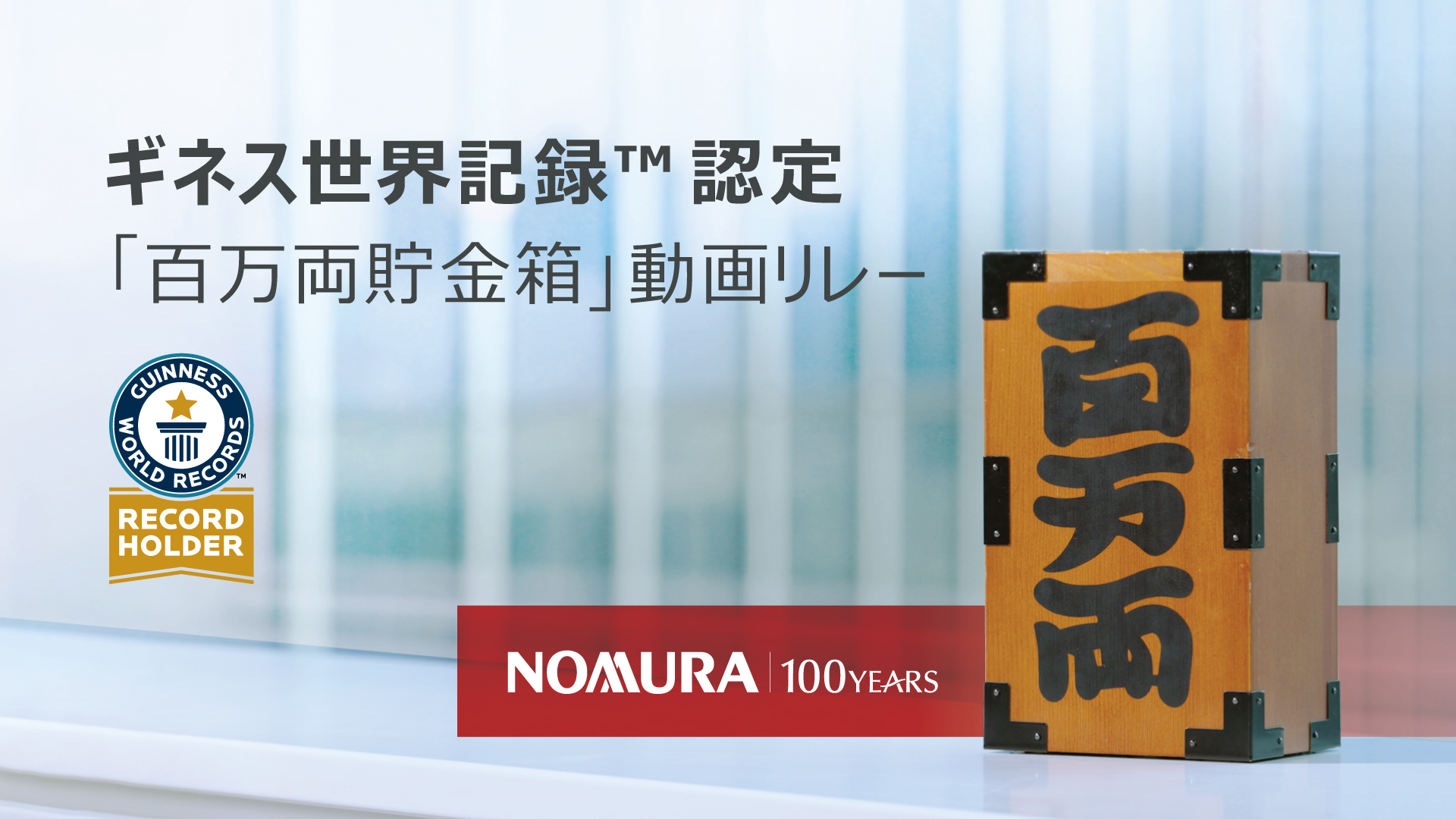 百万両貯金箱動画リレーは、野村グループ創立100周年の節目に、世界中の社員の思いをつなぎ、ギネス世界記録™として形に残した取組みです。